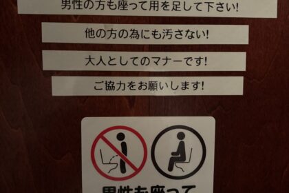 御手洗・化粧室による男性の方のお座りになってのご使用に今一度ご協力をお願いします。